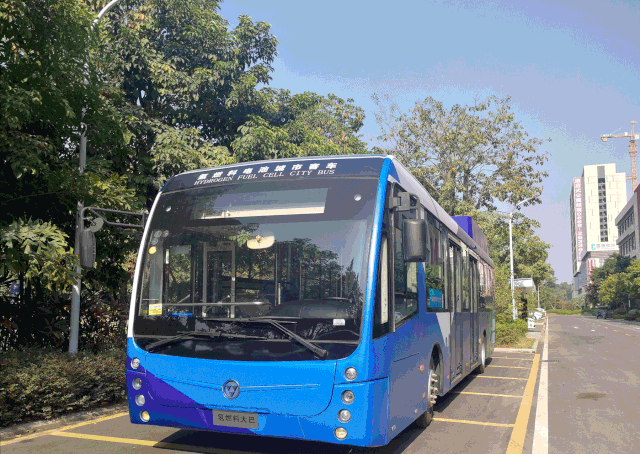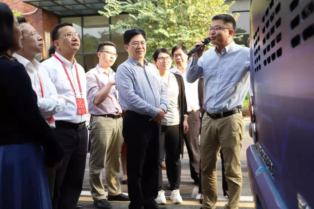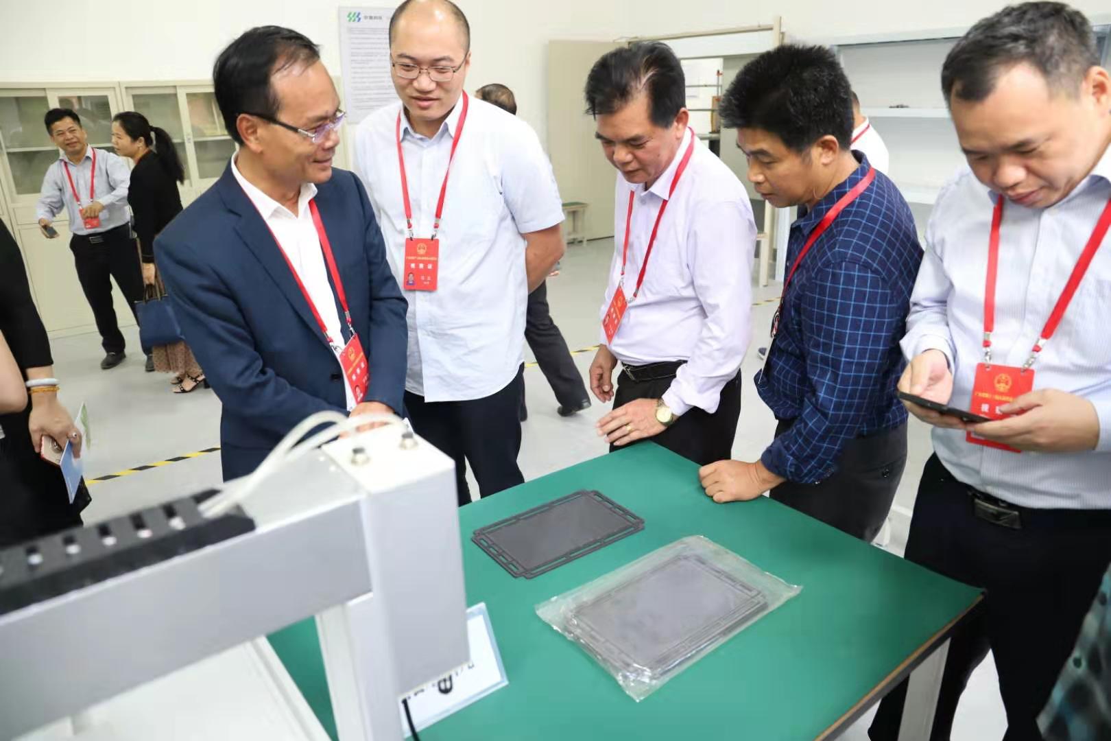 鄧永明一行首先參觀了中氫科技茂名氫燃料電池電堆產品展示中心,了解了正在建設的氫燃料電池技術示范生產基地的相關情況。在引導下,代表們觀摩了搭載著由中氫科技自主研發的60kW氫燃料電池發動機系統的12米奇瑞氫燃料電池城市客車。