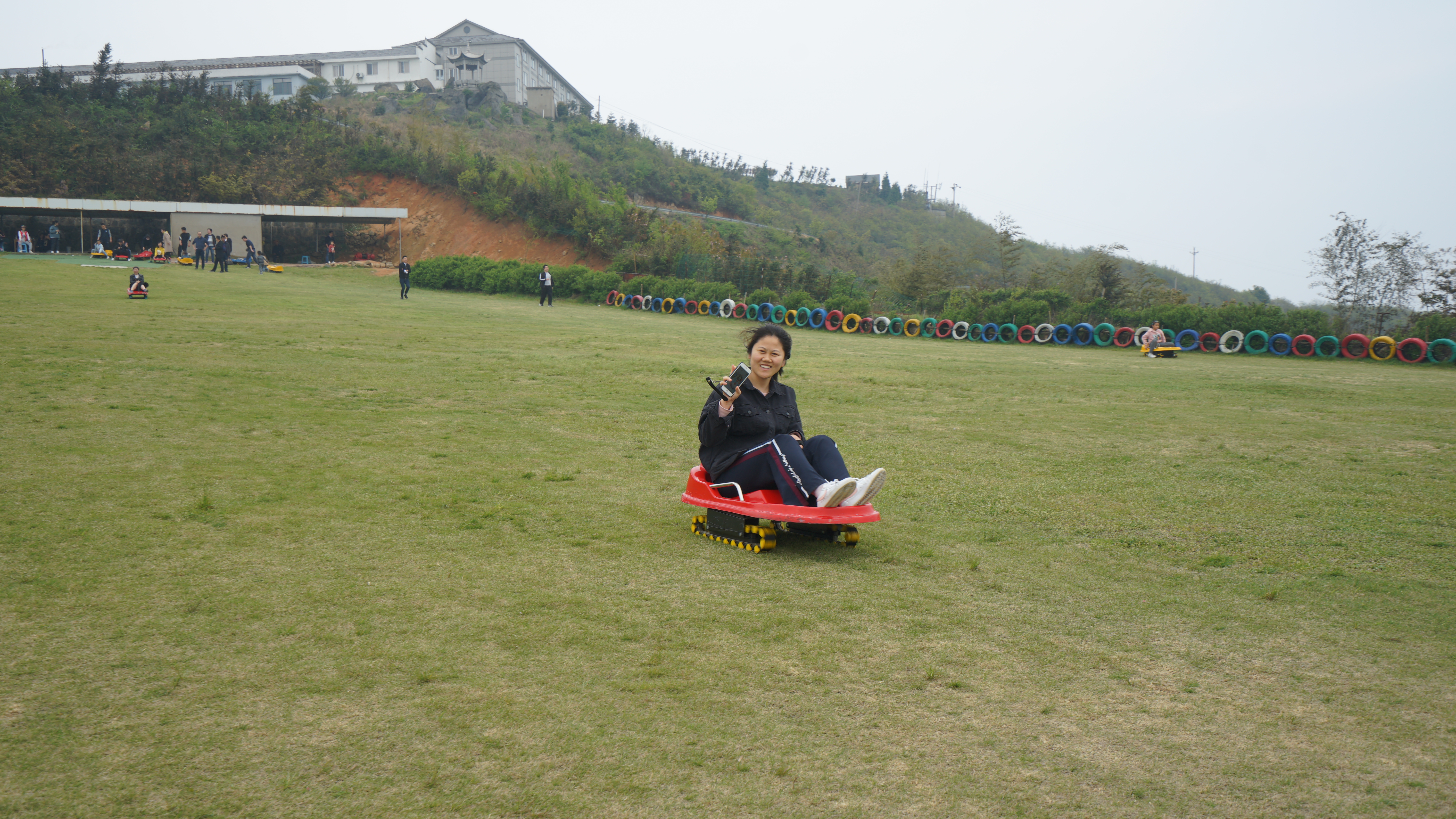 結束驚險的石浪挑戰,小伙伴們前往附近的滑草場,體驗滑草帶來的風馳電掣。小伙伴們懷著緊張雀躍的心情,坐上滑板車,舒展雙腳,拉緊繩子,一鼓作氣地從上坡沖下,耳邊聽到的是呼呼的風聲,還有大伙兒高興的歡笑聲。